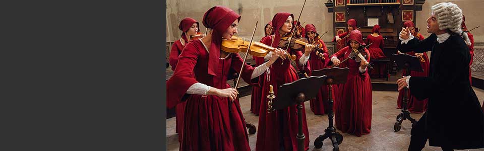 Le musiciste più dotate dell'orfanotrofio si esibiscono in pubblico dietro ad una grata perché non possono farsi vedere in volto, e sono di fatto prigioniere finché non vengono date in sposa a qualche pretendente disposto a pagare una cospicua dote all'istituzione.